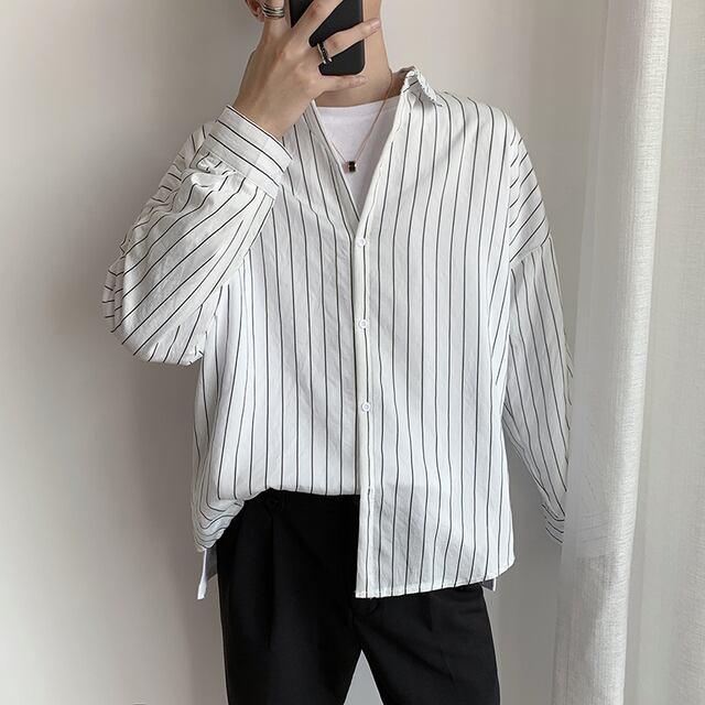 韓国系 縦ボーダーラインシャツ