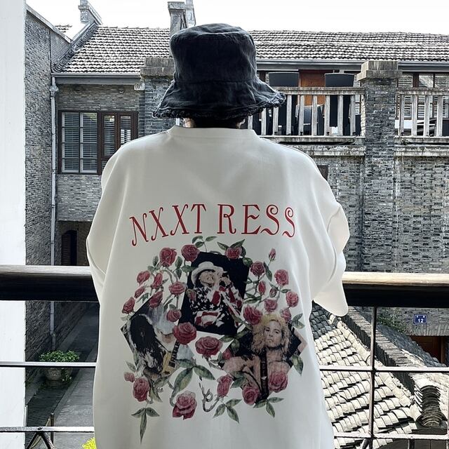 韓国系 バラプリントデザインシャツ