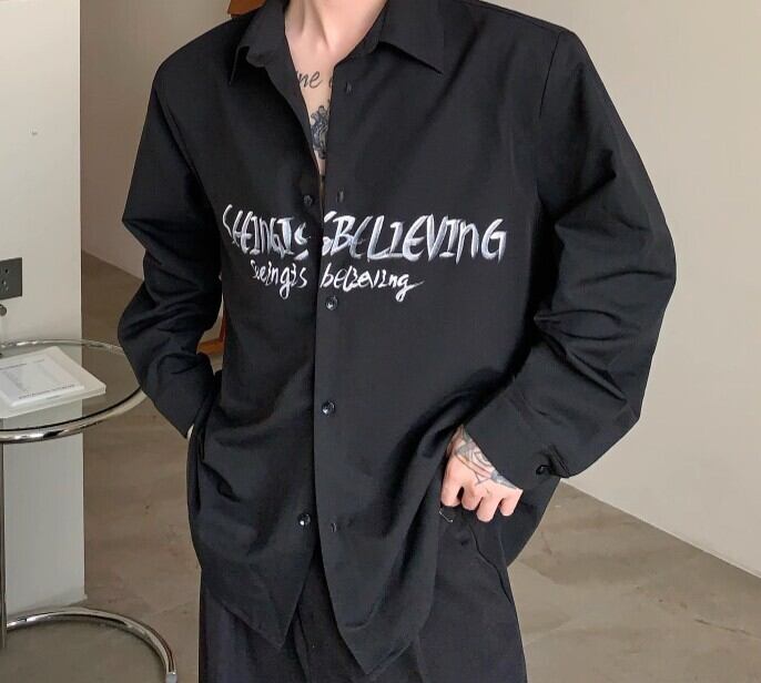 鮮やかなモノトーンのデザインが目を引く、スタイリッシュなシャツです。